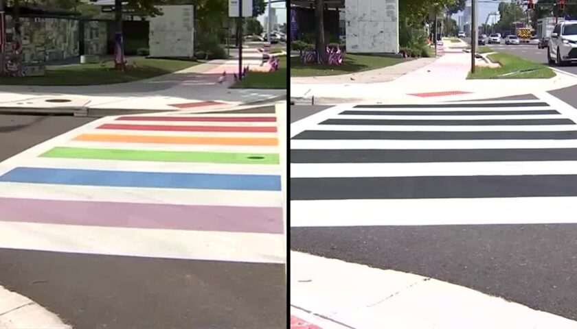 Μια διάβαση πεζών με ουράνιο τόξο, σχεδιασμένη προς τιμήν των θυμάτων μιας μαζικής επίθεσης σε ένα νυχτερινό κέντρο ΛΟΑΤΚΙ+ στο Ορλάντο, βάφτηκε από την πολιτειακή κυβέρνηση της Φλόριντα το βράδυ της Τετάρτης.