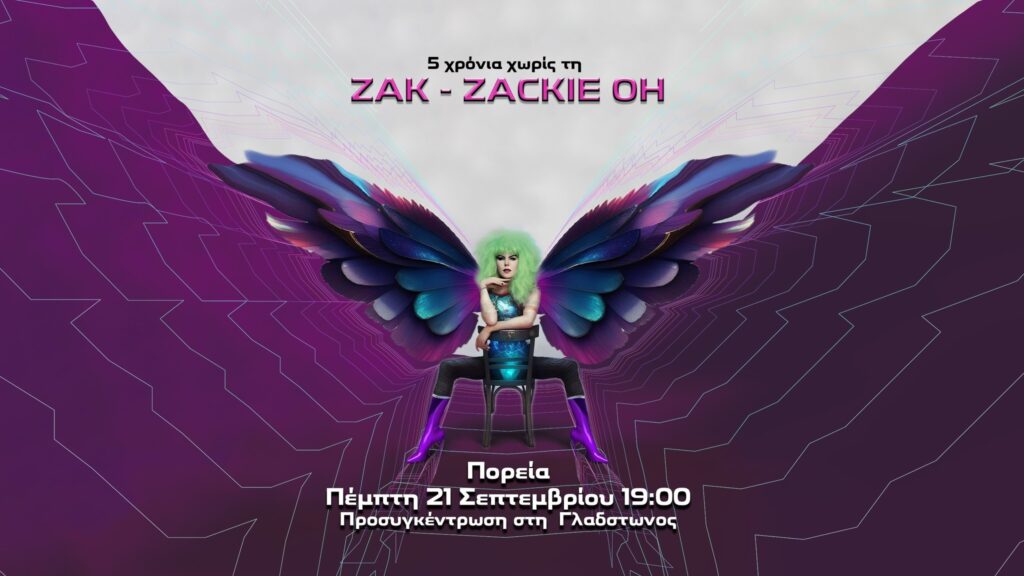 Στις 21 Σεπτεμβρίου, συμπληρώνονται πέντε χρόνια από τότε που ο Ζακ / η Zackie, δολοφονήθηκε σε κοινή θέα ένα μεσημέρι στη Γλάδστωνος, από ιδιοκτήτες και αστυνομικούς. Δεκάδες κινητά κατέγραψαν το αποτρόπαιο έγκλημα που διαδραματίζονταν μπροστά τους, κανένα όμως χέρι δεν απλώθηκε να βοηθήσει τον αιμόφυρτο άνθρωπο μπροστά τους.